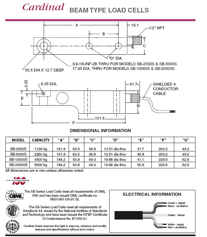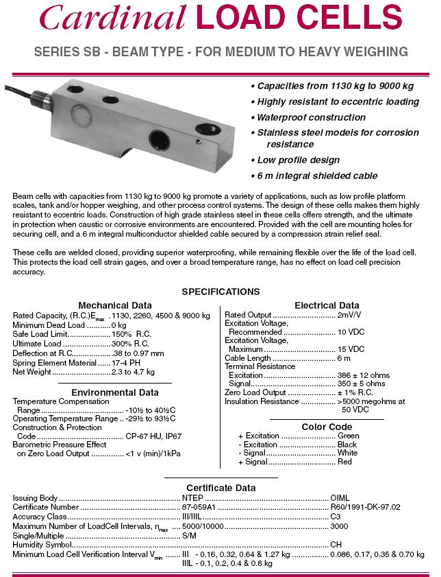 Cardinal SB 稱重傳感器(load cells) 所有型號(hào): SB-2500S 1130KG SB-5000S 2260KG SB-10000S 4500KG SB-20000S 9000KG |