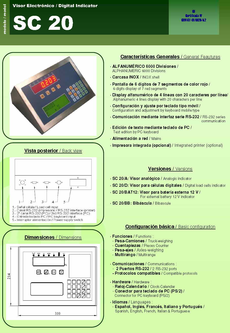 Sensocar SC-20 稱重顯示儀表(indicator)