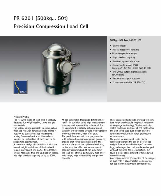 產(chǎn)品名稱:德國Sartorius稱重傳感器,PR6201柱式傳感器