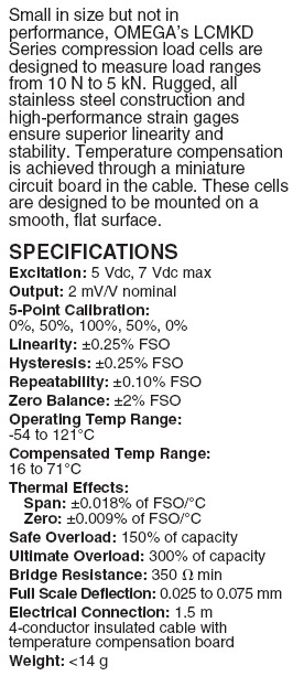 | 產(chǎn)品名稱:Omega LCMKD 壓式傳感器(load cells) |