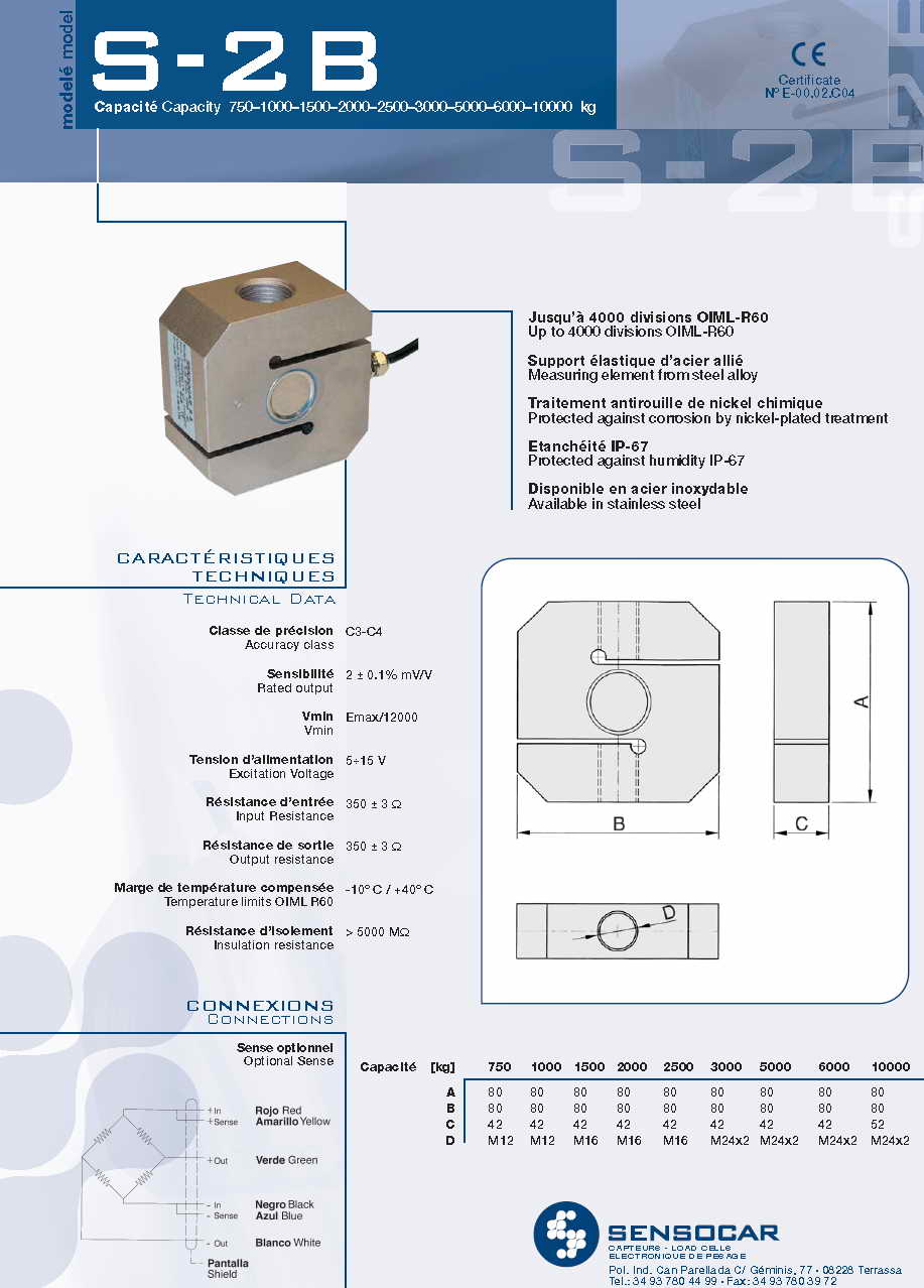 | 產(chǎn)品名稱:Sensocar S2-B S型稱重傳感器(load cells) |