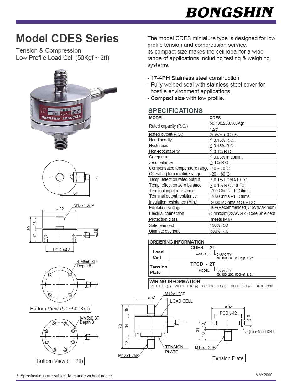 | 產(chǎn)品名稱:CDES 拉壓稱重傳感器(load cell) |