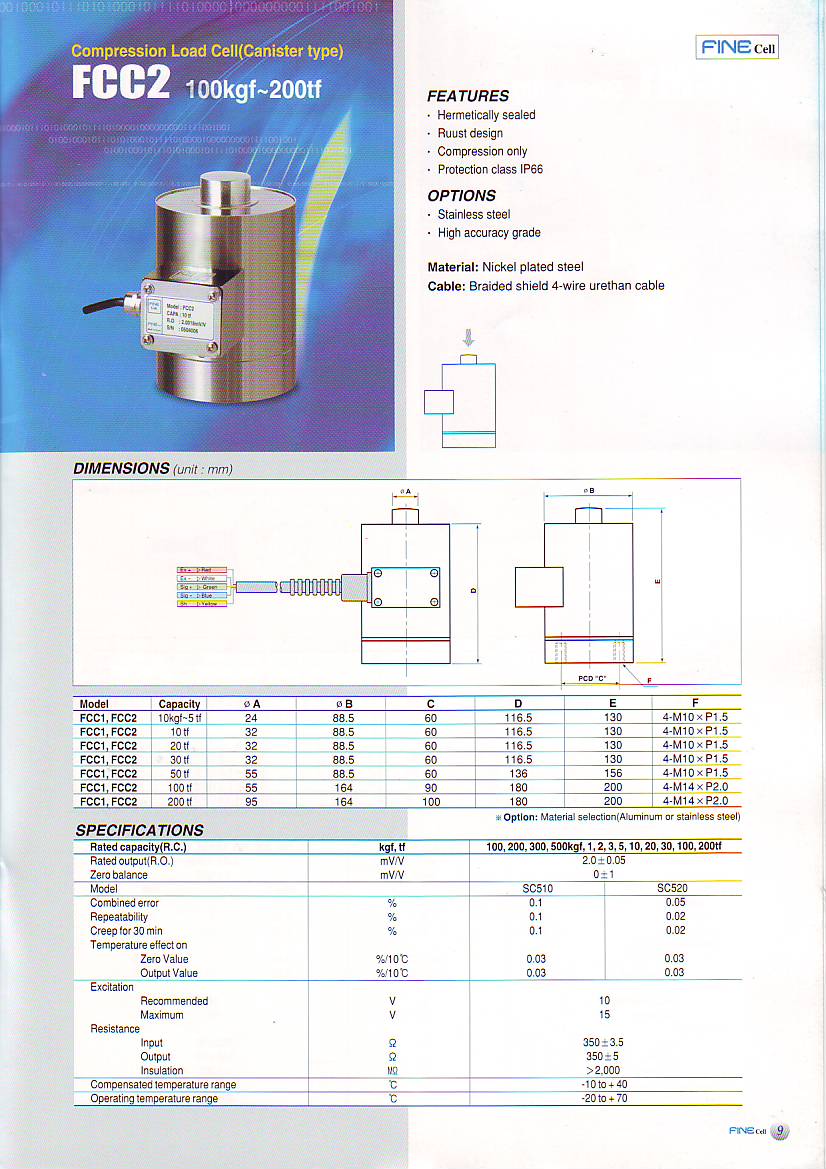 | 產(chǎn)品名稱:Fine FCC2 柱式稱重傳感器(load cells) |