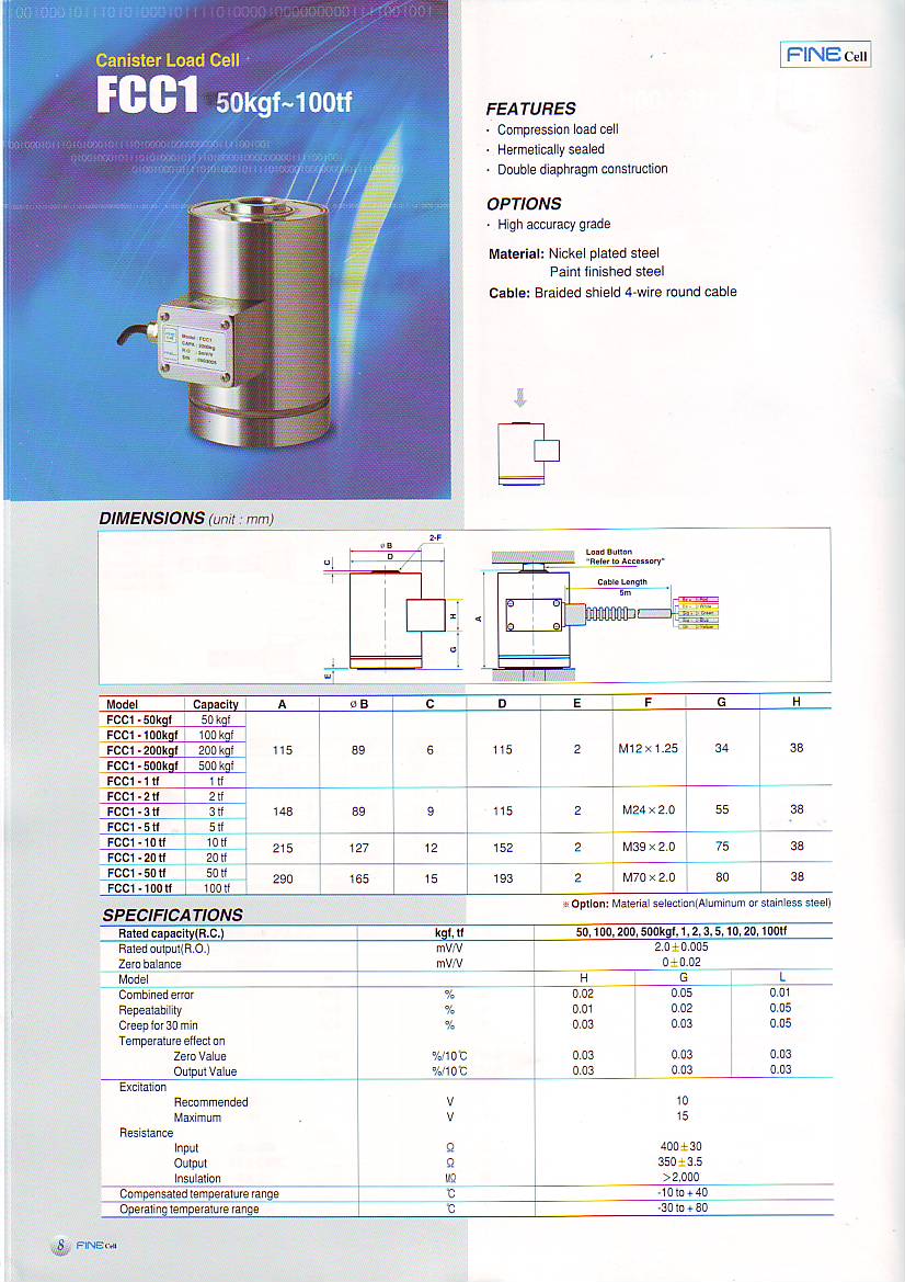 Fine FCC1 柱式稱(chēng)重傳感器(load cells)