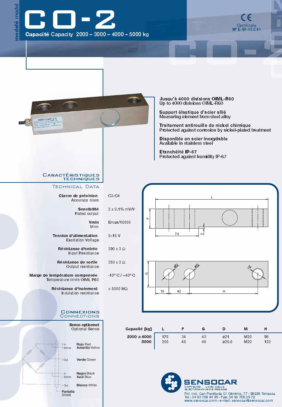 Sensocar CO-2 懸臂梁式稱重傳感器(load cells)