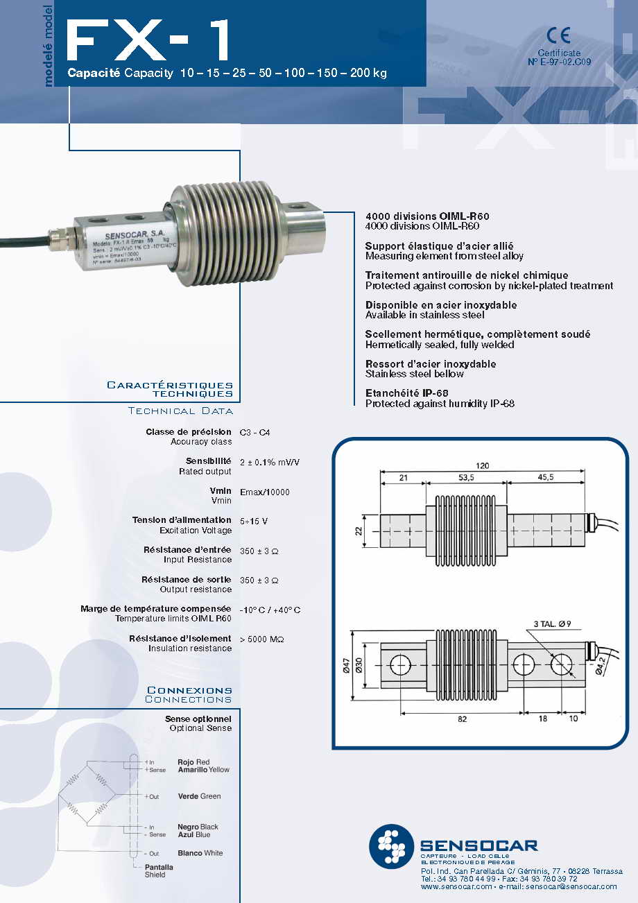 | 產(chǎn)品類型:西班牙Sensocar稱重傳感器及稱重儀器系列 |