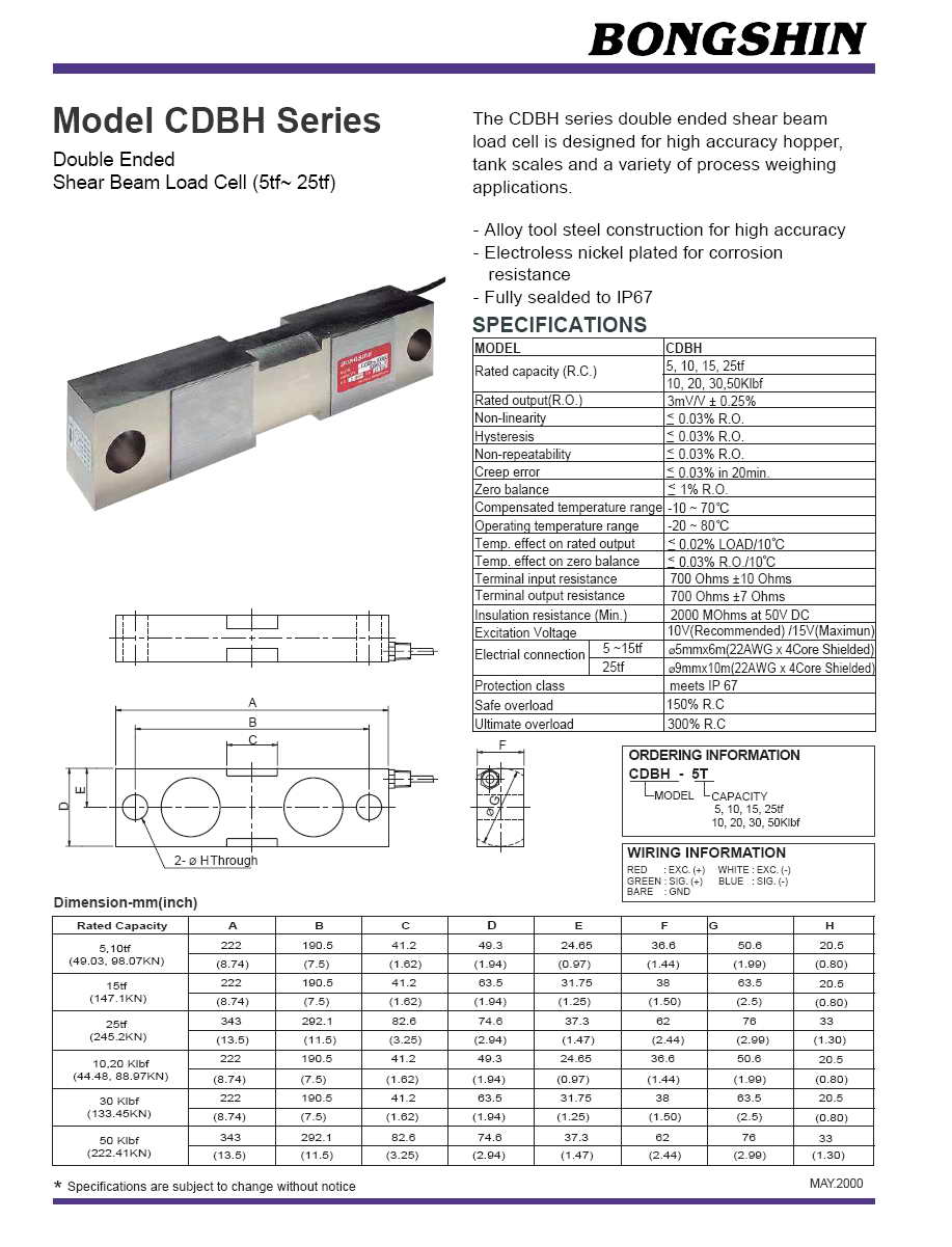 | 產(chǎn)品名稱:CDBH 剪切式稱重傳感器(load cell) |