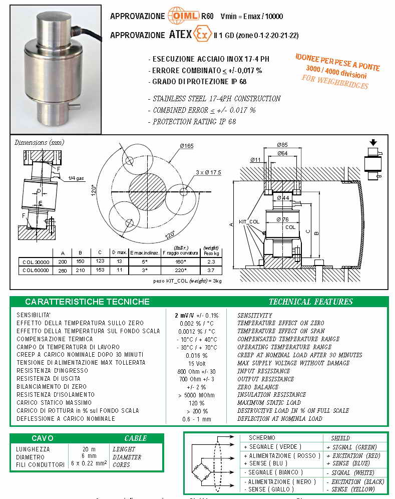 | 產(chǎn)品名稱:Laumas COL 壓式稱重傳感器(load cells) |