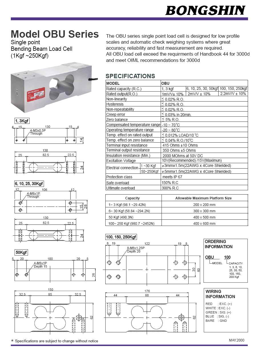 | 產(chǎn)品名稱:OBU 單點式稱重傳感器(load cell) |