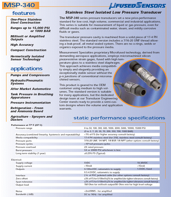 MSP-340 壓力傳感器(pressure transducer)