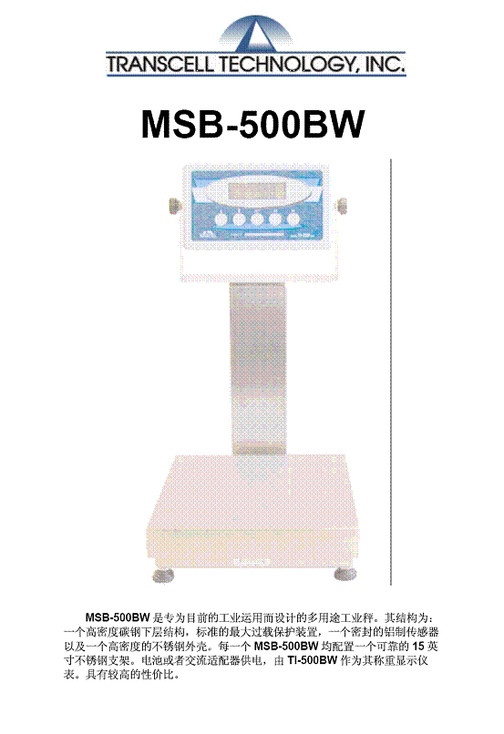 | 產(chǎn)品名稱:Transcell MSB-500BW 工業(yè)秤(scales) |