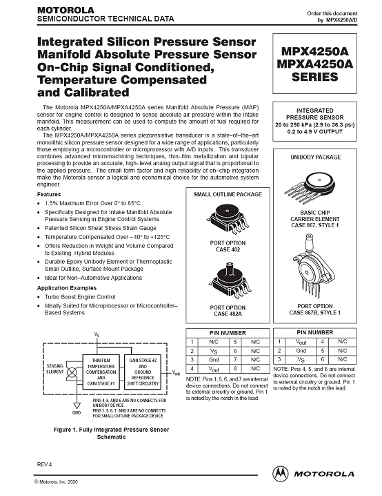 MPX4250A 氣壓傳感器(sensor)