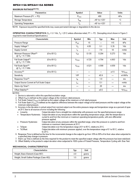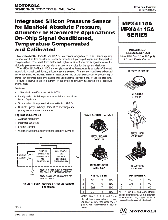 MPX4115A 氣壓傳感器(sensor)