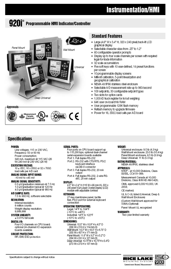 920i 稱重顯示儀表(Indicator)